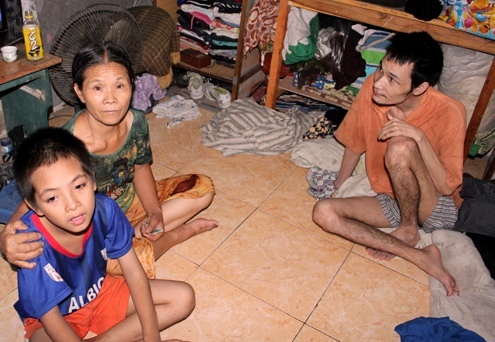 “Nhiều hôm đói quá, bụng quặn thắt lại, tôi không đứng dậy nổi. Nghĩ mình không đi thì hai đứa chết đói, mà xin hàng xóm mãi sao được, tôi đành cố đứng dậy cầm quang gánh đi.”, vừa nói, bà Tính vừa hướng ánh mắt nhìn cậu con trai tên Hùng còm nhom đang ngồi một chỗ. Ngoài vấn đề về thần kinh, anh Hùng còn bị nhiều bệnh nan y khác nữa.