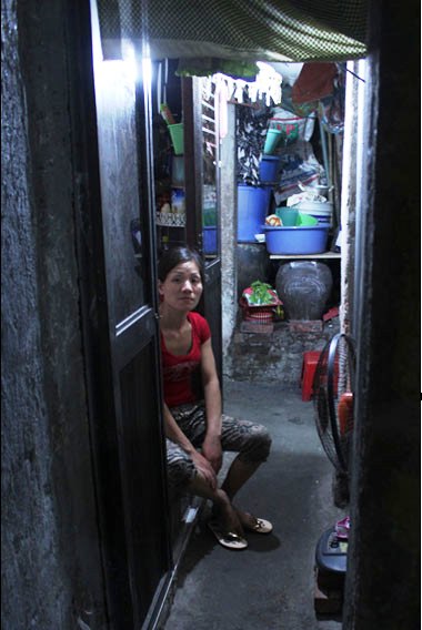 Con ngách tối om rộng hơn một người đi ở khu Trại Nhãn (phường Ô Chợ Dừa, Đống Đa, Hà Nội) là nơi ở của gần chục hộ dân. Cuối ngõ, căn nhà rộng chừng 6m2 hôi hám, ẩm thấp, kín bưng, la liệt quần áo cũ, là "tổ ấm" của bà lão Nguyễn Thị Tính cùng con trai và cháu ngoại. Nhà không có cửa nên mưa hắt vào bên trong đọng lại thành vũng, tường mốc meo vì ẩm ướt.