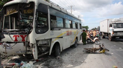 Khoảng 10g30’ngày 22-11-2012, một xe khách loại 45 chỗ ngồi đang lưu thông trên quốc lộ 1 hướng Mỹ Thuận - Tp.Hồ Chí Minh, đến khu vực giao nhau với đường dẫn đường cao tốc Tp.HCM - Trung Lương thuộc xã Phước Thạnh, huyện Châu Thành (Tiền Giang) thì đột ngột lao lên lề đâm vào trụ đèn tín hiệu giao thông. Trước khi đâm trụ đèn, xe khách đã va quẹt hai xe máy.