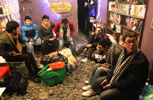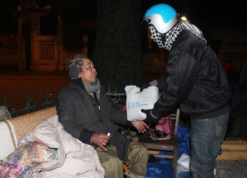 Ngồi trên ghế đá trong đêm Đông lạnh giá, ông lão hơn 60 tuổi đưa bàn tay nhăn nheo lạnh cóng đón lấy hộp xôi, chiếc áo từ tay một bạn trẻ. Ông bật khóc xúc động bởi từ tối chưa có gì vào bụng ngoài vài ngụm rượu người bạn vừa mang tới.