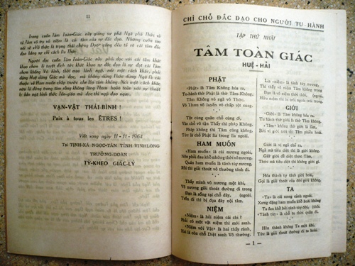 Nhen ngọn đuốc trí huệ soi tâm, chúng tôi được một số ít quyển trao truyền tay xem, vị nào cũng nhận thấy giá trị của nó, ước muốn quyển kinh này có bên mình để gẫm xem mỗi lúc. Sách in ngoài Trung Việt, chỉ được vào miền Nam một giới hạn không đủ cung cấp, mà mong mãi không thấy tái bản. Chúng tôi mới đồng xoay ra nghĩ in một số kinh đa thiểu để rộng truyền bá đạo lý cho số người tìm học chơn lý dễ nhận gặp ánh sáng.