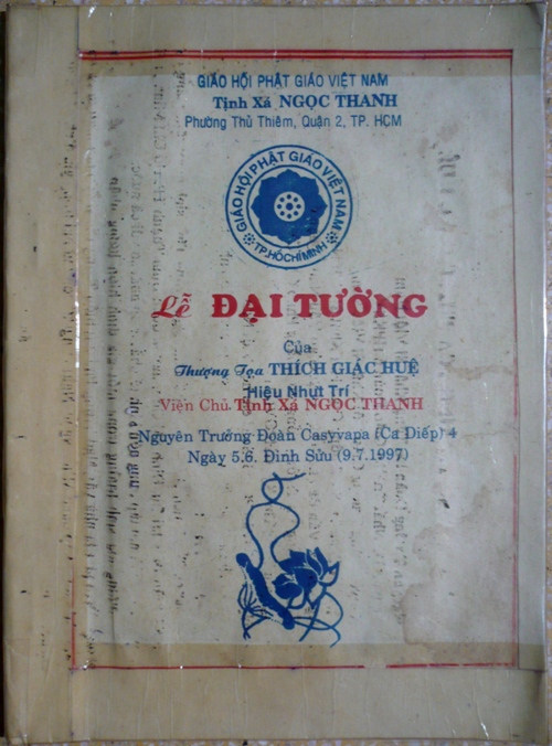 – Năm cấp chứng điệp này là Phật lịch 2526, tức là năm 1982, sau khi Phật giáo toàn quốc đã thống nhất thành lập Giáo hội Phật giáo Việt Nam.