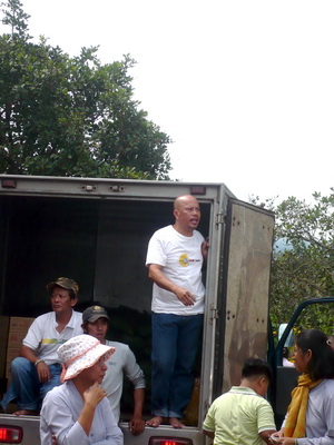 Sáng nay, ngày 18 tháng 9, phái đoàn lại đến xã Đạ-tông huyện Damrong để trao 300 phần quà cho các bà con dân tộc người H’mông nghèo khổ. Chiếc xe tải đã ỳ ạch cộ 4 tấn hàng từ Tp. Hồ Chí Minh đi suốt cả ngày đêm để đến đươc Prenn. Rồi bây giờ, chiếc xe tải đáng thương đó lại cùng các xe du lịch trong đoàn vượt qua 4 con đèo Phú Sơn, đèo Chuối, đèo Bằng Giang và đèo Gọt trên con đường dài 110km. Cả 4 đèo này đều xứng là đèo ngoạn mục của Việt Nam. Đèo Phú Sơn thì cao ngất, đèo Chuối đã bị lở mặt đường nhiều chỗ… Xuất phát từ tịnh xá Ngọc Thiền ở Prenn từ 5 giờ sáng, đoàn đi đến được Đạ-tông vào 9 giờ, mất đúng 4 tiếng. Vì đâu mà mấy núi cũng qua, mấy sông cũng vượt? Cho thì ở đâu mà không cho, cần gì đi xa thế?... Thế mới biết được tấm lòng của những người đi cho không hề nhẹ đâu, thật rất đáng trân trọng.