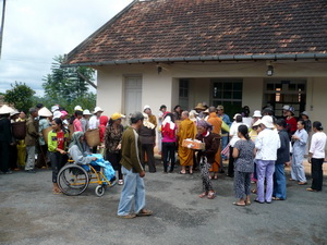 Sau nhiều việc đã tiến hành, nào là góp tiền, góp hàng, mua quà, vào bao, sửa soạn, thuê xe, vận chuyển, liên lạc qua lại, tổ chức đoàn đi, tìm đến chỗ, tập hợp mọi người, trao gởi… vào hai ngày 17 và 18 tháng 9, Đoàn từ thiện Tịnh xá Trung Tâm – quận Bình Thạnh đã làm xong một chuyến cứu trợ những đồng bào Việt Nam bất hạnh ở tỉnh Lâm Đồng như bao nhiêu lần trước.