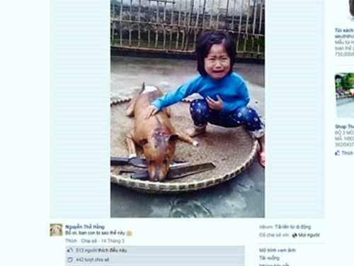 Những ngày qua, bức ảnh bé gái ngồi khóc nức nở bên cạnh chú chó đã bị làm thịt, thui vàng, khiến cộng đồng mạng xôn xao, trong đó có tôi. Và tôi đã khóc khi lần đầu nhìn thấy bức ảnh ấy!