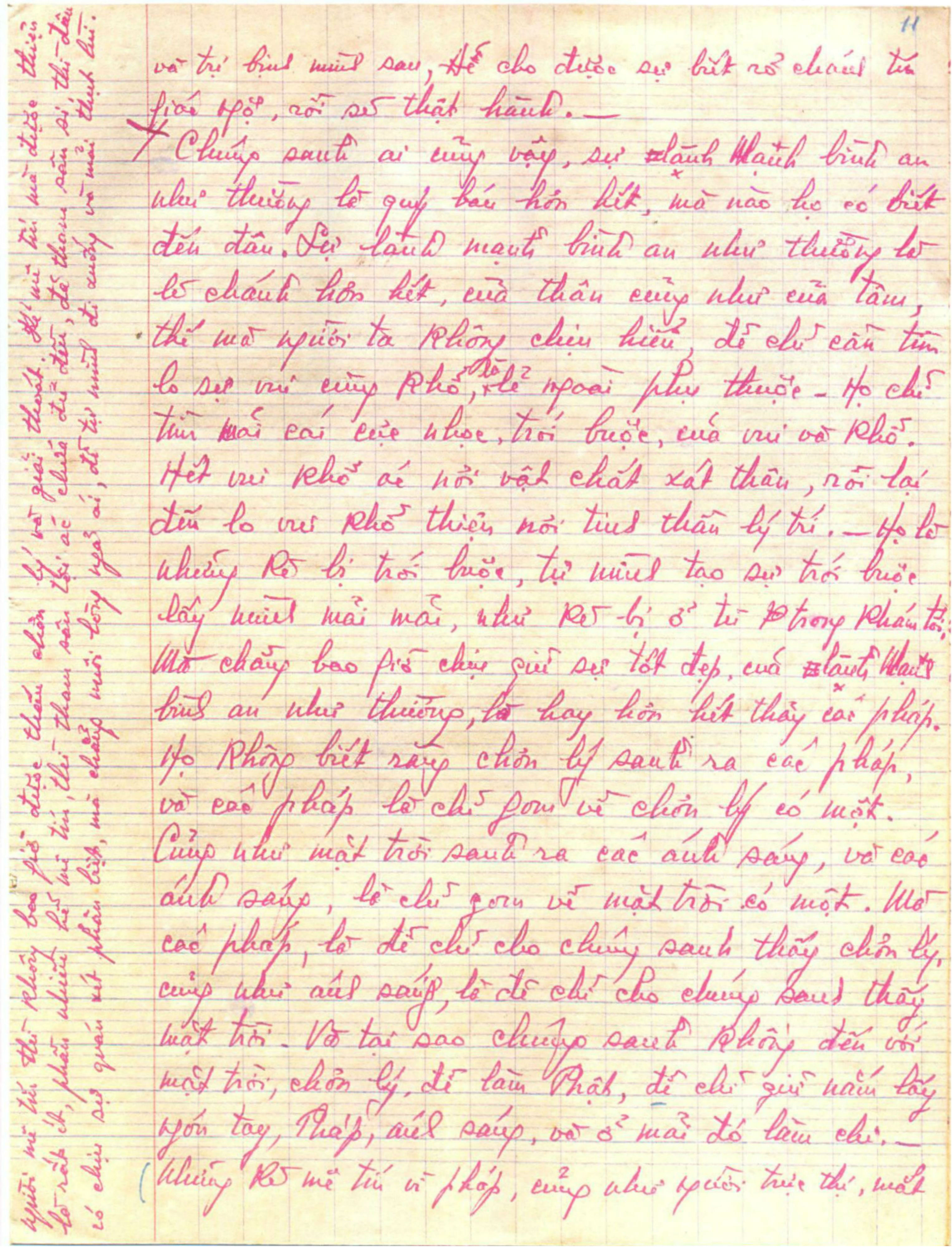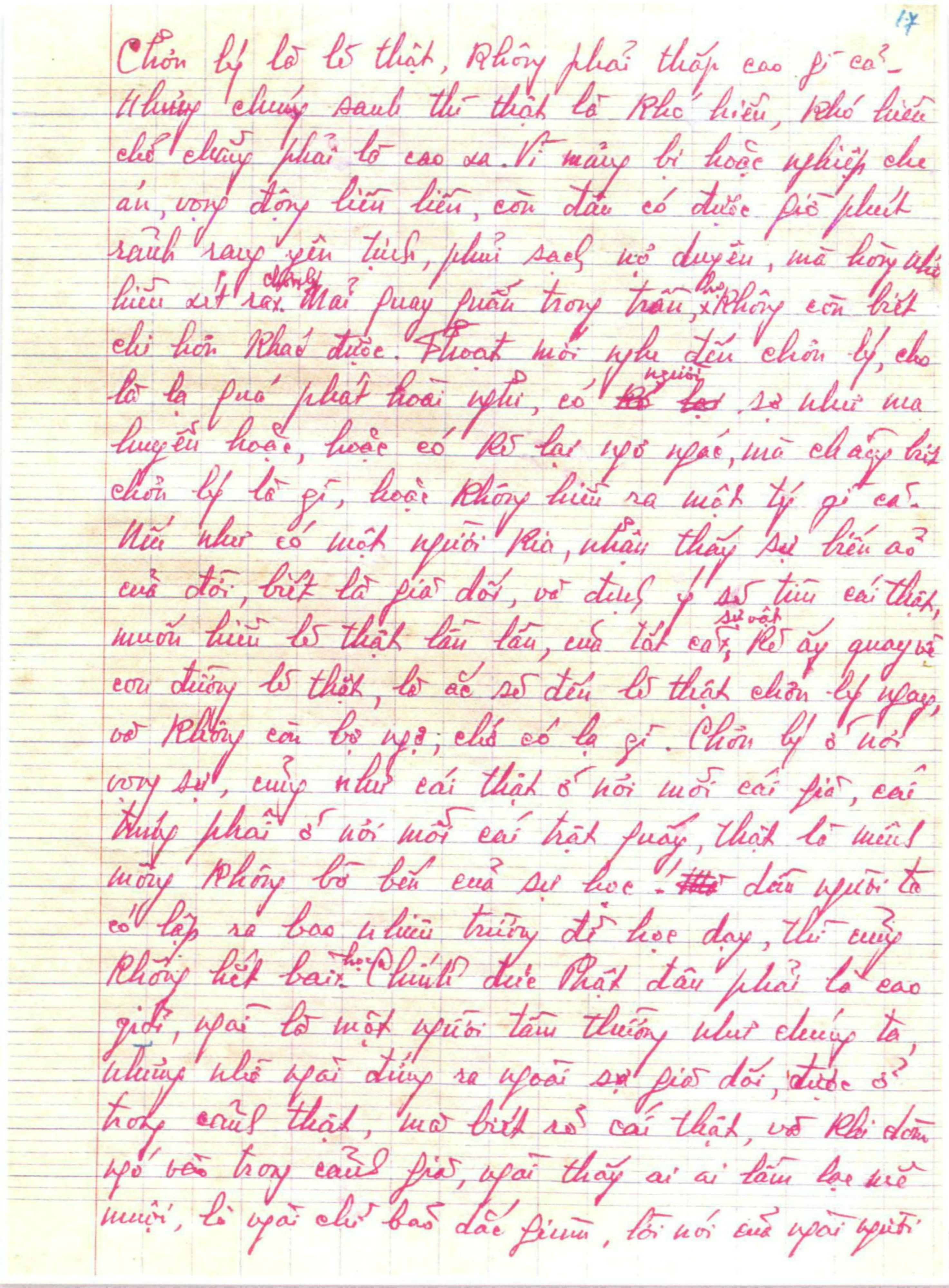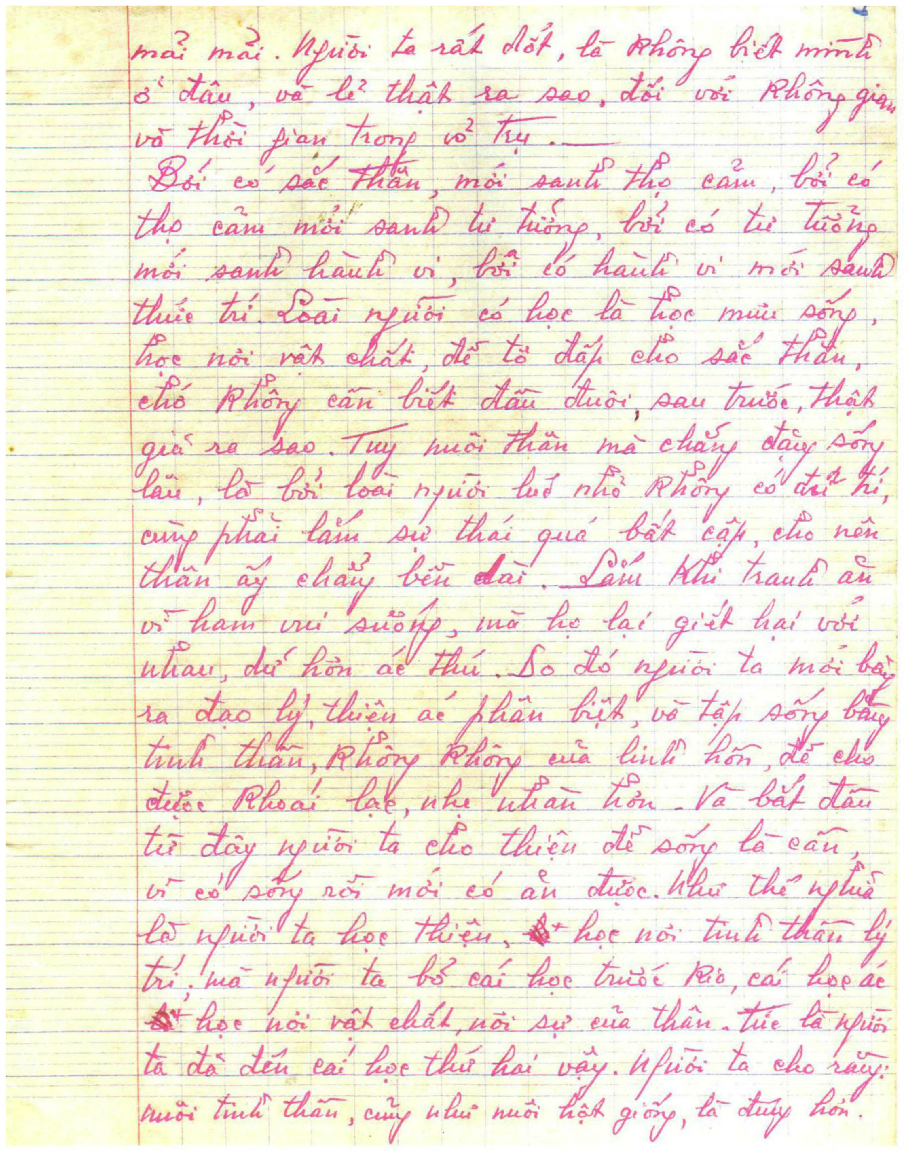 Gồm 24 trang vở học trò, viết tay bằng bút bi mực đỏ.
