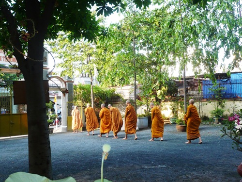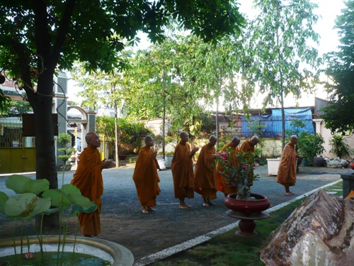 Chư thượng tọa, đại đức Tăng bắt đầu đi khất thực mỗi buổi sáng...
