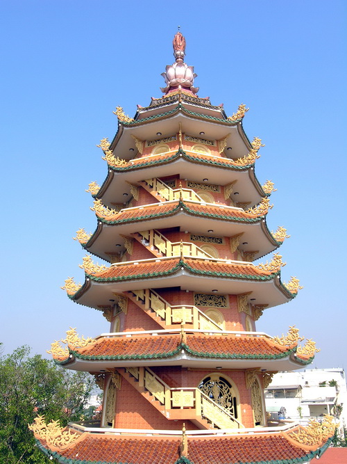 Tòa Pháp tháp nằm giữa chánh điện, chân có 3 bậc, nóc có 13 tầng...