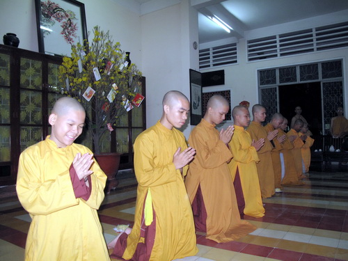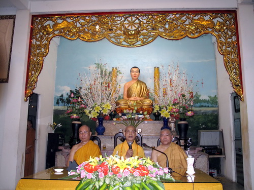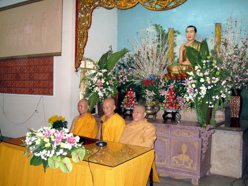 Quý Hòa thượng chứng minh cho Phật tử sáng ngày mùng một Tết...