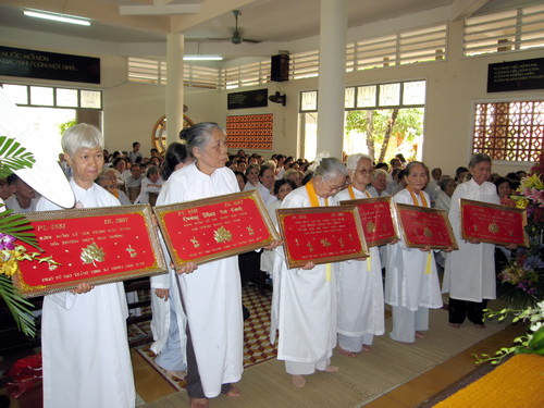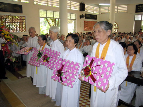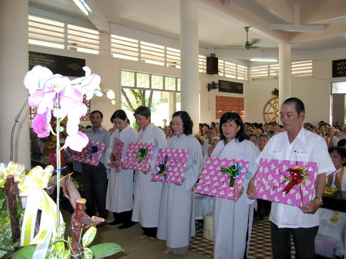 Các Trưởng nhóm của Ban Trợ duyên Phật pháp lên nhận quà (năm khác)