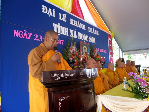 Hòa thượng Minh Thiện đang đọc diễn văn khai mạc