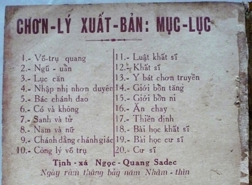 Thời điểm in tại Đại Đồng (rằm tháng 7 năm Nhâm Thìn 1952), Chơn Lý mới có 20 quyển đầu, từ Chơn lý 1 – Võ Trụ Quan đến Chơn lý 20 – Cư Sĩ.